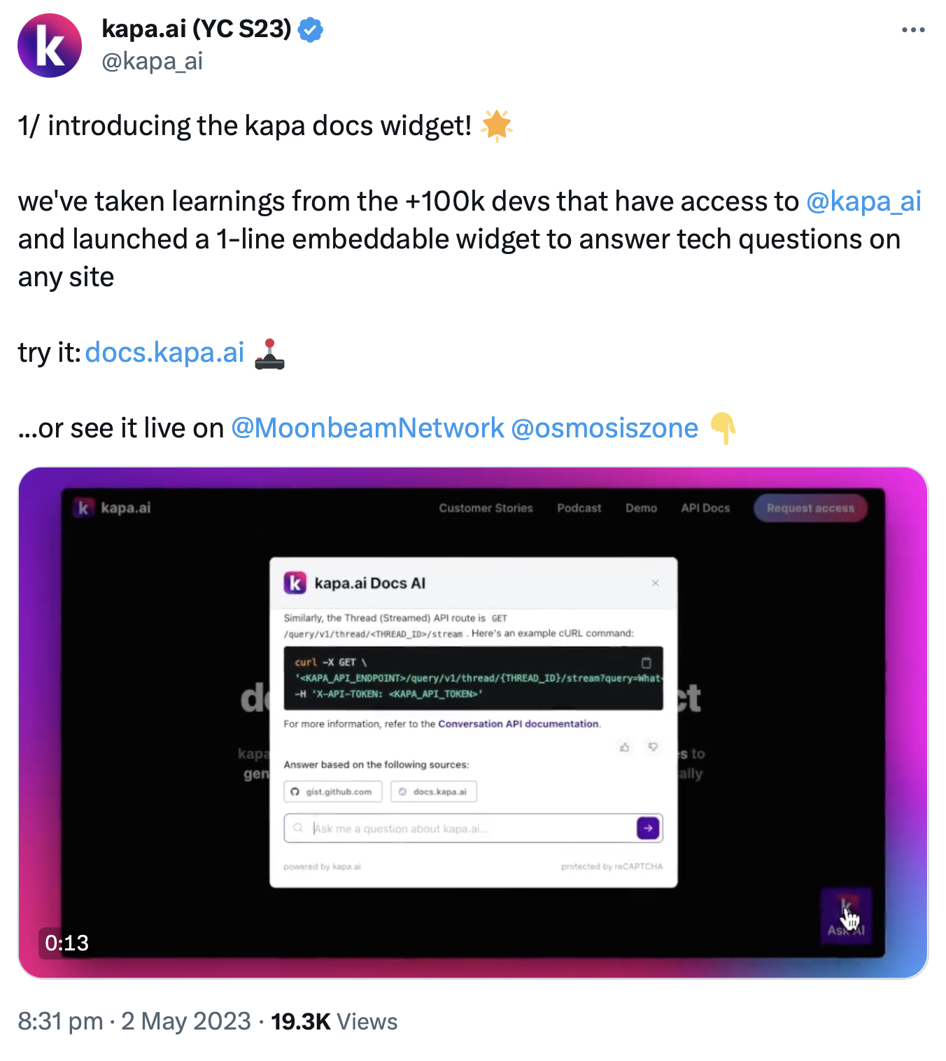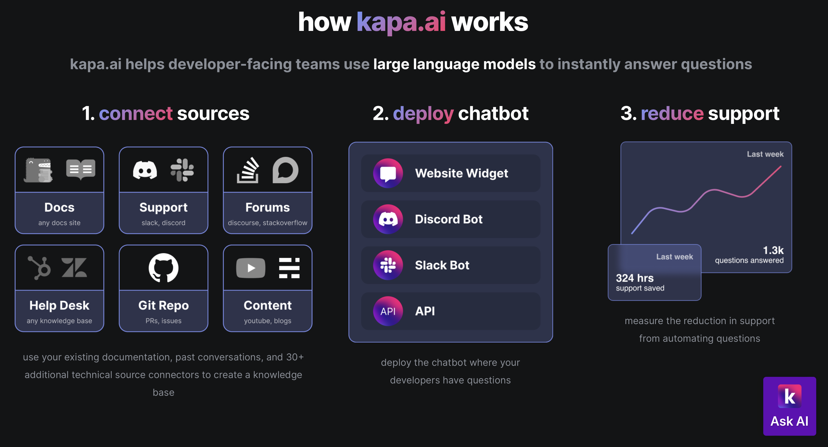 Best landing page I've seen in a while. You can also find several demos. They achieved a very cool milestone back in May 2023. Adding the LLM + RAG feature to your website is as simple to integrate as a widget.
